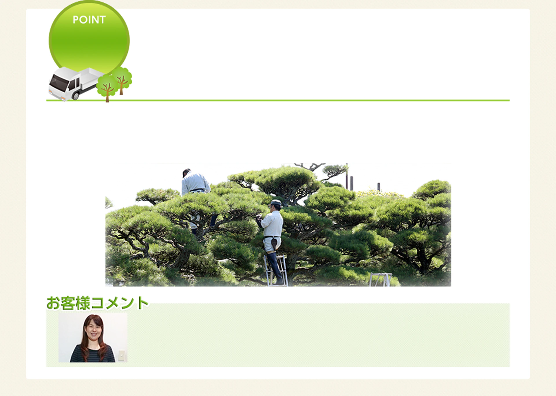 こだわりある庭でしたので、正直不安でしたが、以前頼んだ業者よりも、綺麗な仕上がりでしたのでまた、次回もお願いします。